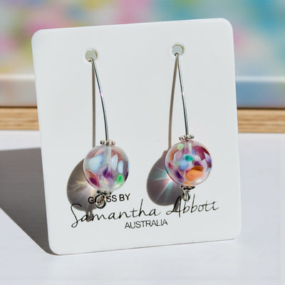 Enjoy exploring our collection of Samantha Abbott handcrafted glass drop earrings. Each pair is individually flame-worked from vibrant, upcycled glass, resulting in truly unique earrings full of colour, character, and movement. Lightweight and hypoallergenic, our drop earrings are as comfortable as they are eye-catching—perfect for everyday wear, special occasions, or thoughtful gifts. Discover wearable art that celebrates creativity, craftsmanship, and sustainable style.